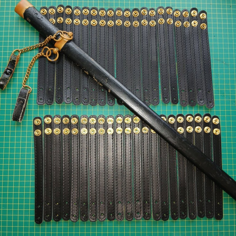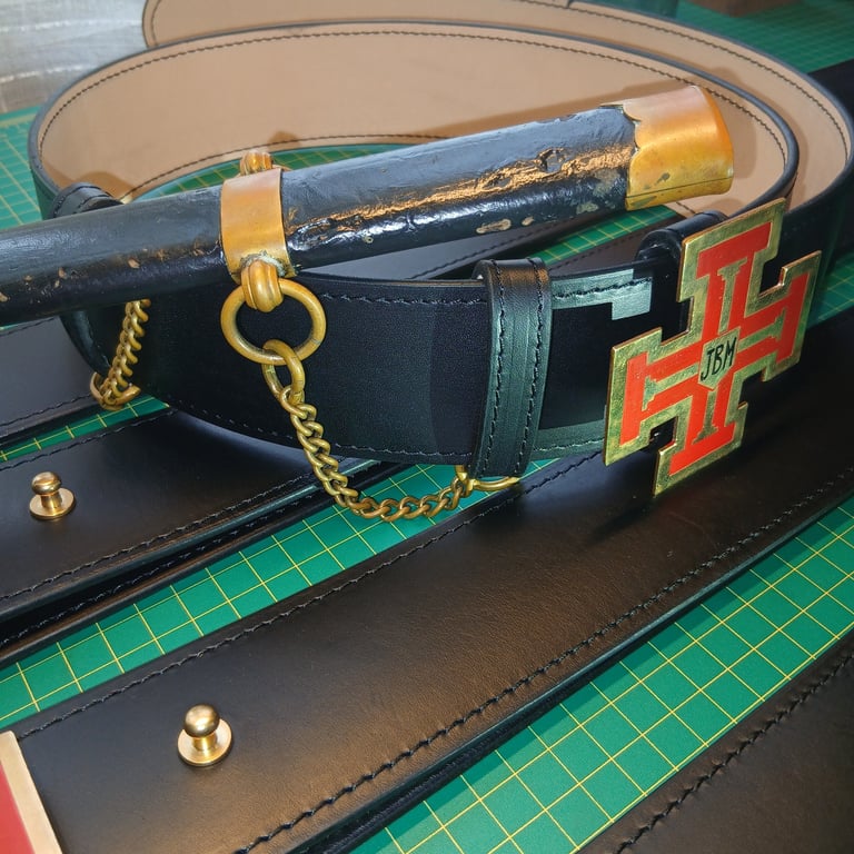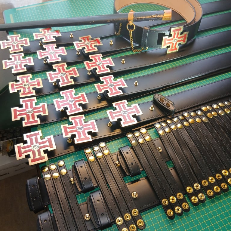 I have been working on an order for 20 belts. Not your everyday belts I might add... They are costume belts. They do not have a standard buckle and they also require sword scabbards also, not the scabbard itself but the belt loops to attach the scabbard to the belt. This is a very unique order. It is a custom job to replace the worn-out aging belts the fraternity had.